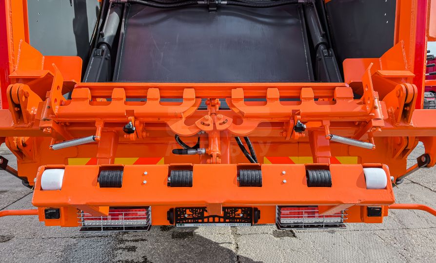 Мусоровоз имеет прессующую плиту, изготовленную из высокопрочной стали, выполняющую функцию забора и прессования отходов из загрузочного бункера в основной (приводится в действие четырьмя гидроцилиндрами), и выталкивающую плиту, которая выполняет функцию обратной нажимной пластины и позволяет производить процесс подпрессовки. В зависимости от плотности отходов, коэффициент уплотнения может увеличиваться до 1:6.