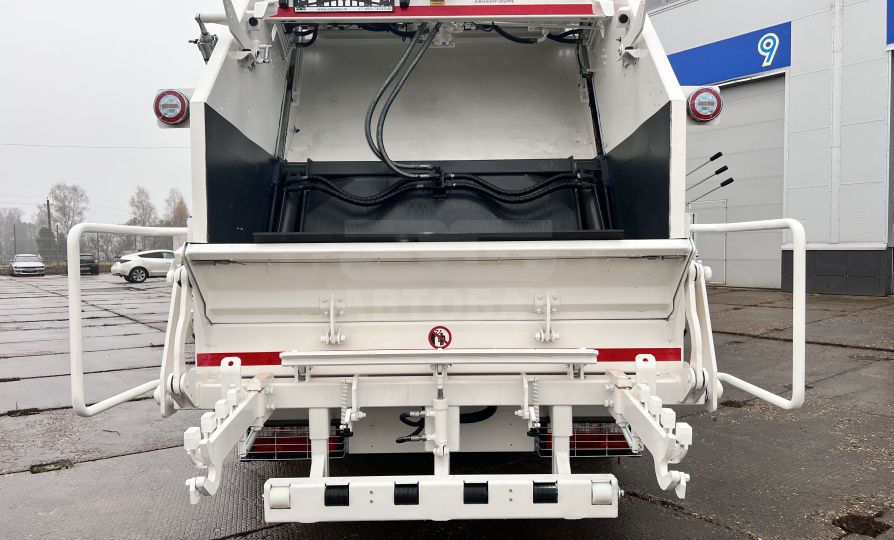 Мусоровоз имеет прессующую плиту, изготовленную из высокопрочной стали, выполняющую функцию забора и прессования отходов из загрузочного бункера в основной (приводится в действие четырьмя гидроцилиндрами), и выталкивающую плиту, которая выполняет функцию обратной нажимной пластины и позволяет производить процесс подпрессовки. В зависимости от плотности отходов, коэффициент уплотнения может увеличиваться до 1:6.